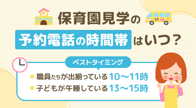 特に子どもたちが午睡している午後13~15時は、保育士たちが子どもを見守ったり、連絡帳や事務作業をしたりして外出していることが少ないため、狙いどきです。もし保育士がいなくても、事務員の方や園長が電話に出て折り返すケースもあるので、遠慮せずに電話をかけてみてください。